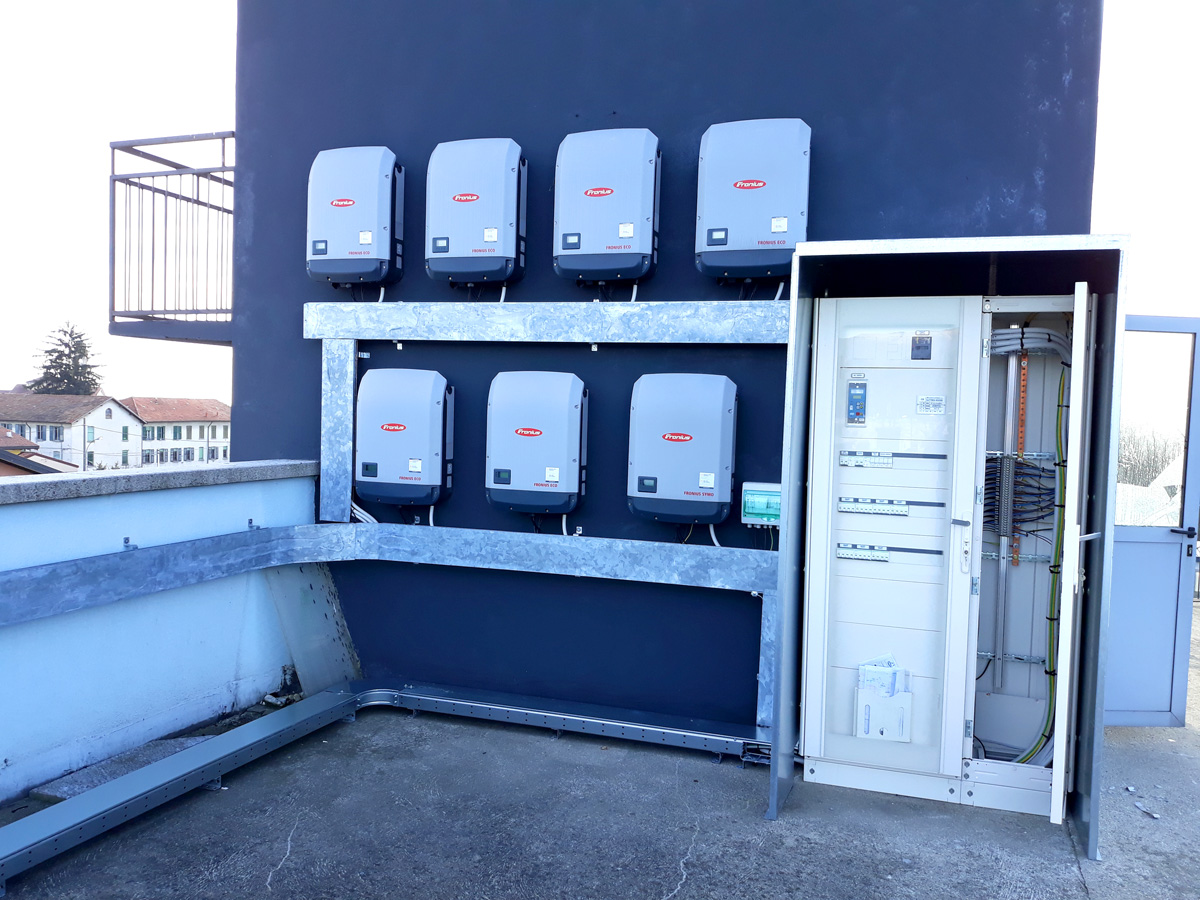 Impianto fotovoltaico installato nel 2019 presso l’azienda Exteta Srl con sede in via Del Moriolo a Brenna (provincia di Como): 430 pannelli solari SunPower SPR-P19-395-COM per 169,85 kWp di potenza, 7 inverter Fronius (cinque ECO 25.0-3-S, un ECO 27.0-3-S e un SYMO 15.0-3-M) e sistema di monitoraggio.