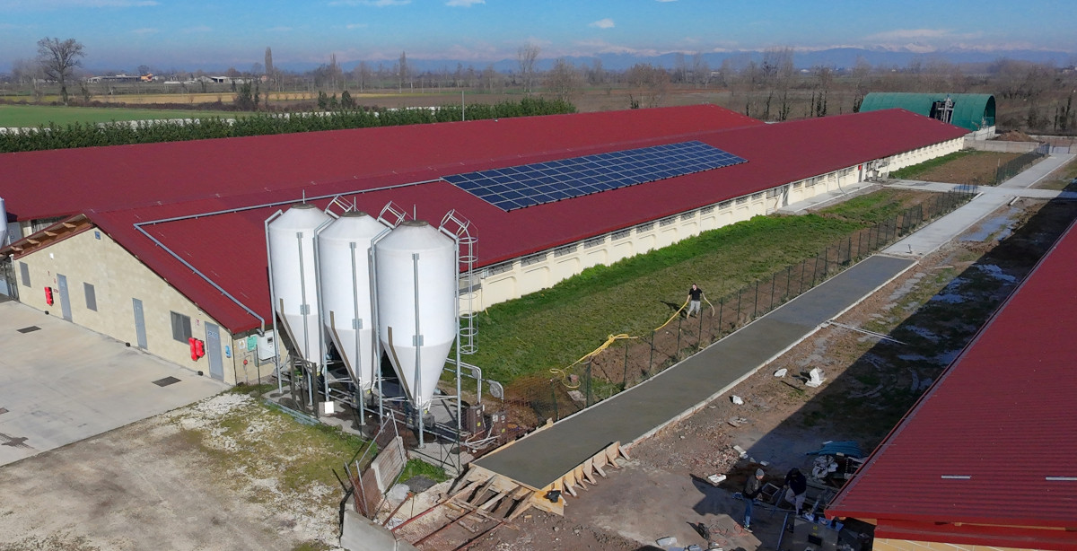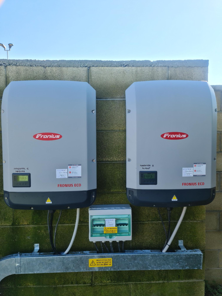 Impianto fotovoltaico installato nel 2025 presso la Società Agricola Santa Marta Srl a Ostiano (CR): 100 pannelli solari SunPower Maxeon 3 COM 400Wp per 100,00 kWp di potenza, due inverter Fronius Eco 25.0-3-S Light e un sistema di monitoraggio.