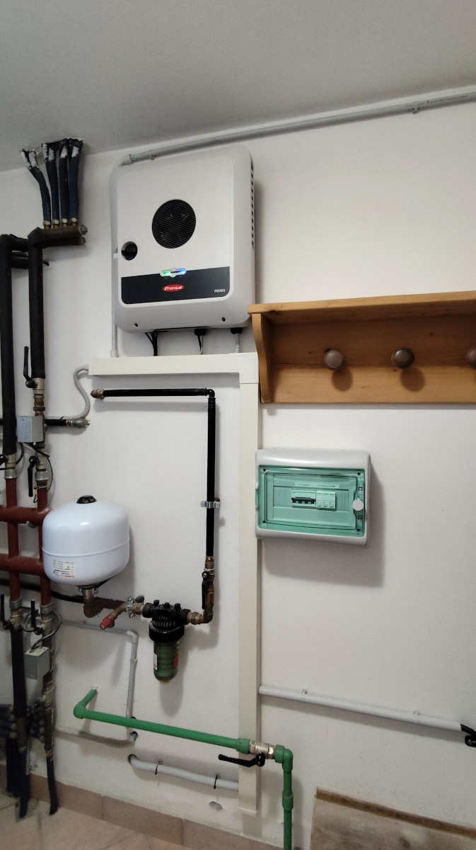 È composto da 8 pannelli solari SunPower Performance 7 450, un inverter Fronius Primo Gen24 plus 3,6, un sistema di accumulo (batteria) BYD HVM da 5 kWh e da un sistema di monitoraggio per una potenza di 3,6 kWp (chilowatt di picco).