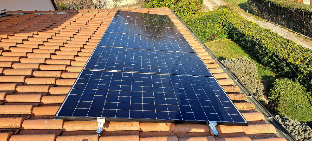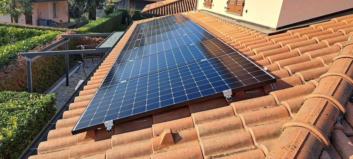 Impianto fotovoltaico installato nel 2025 presso un’abitazione privata in via A. De Gasperi a Viganò, in provincia di Lecco (Lombardia).