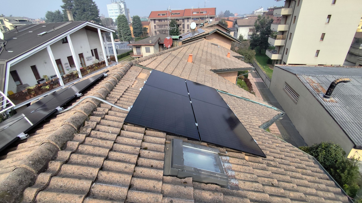 Impianto fotovoltaico installato nel 2025 presso un’abitazione privata in via Pacinotti a Lissone, in provincia di Monza e Brianza (Lombardia).